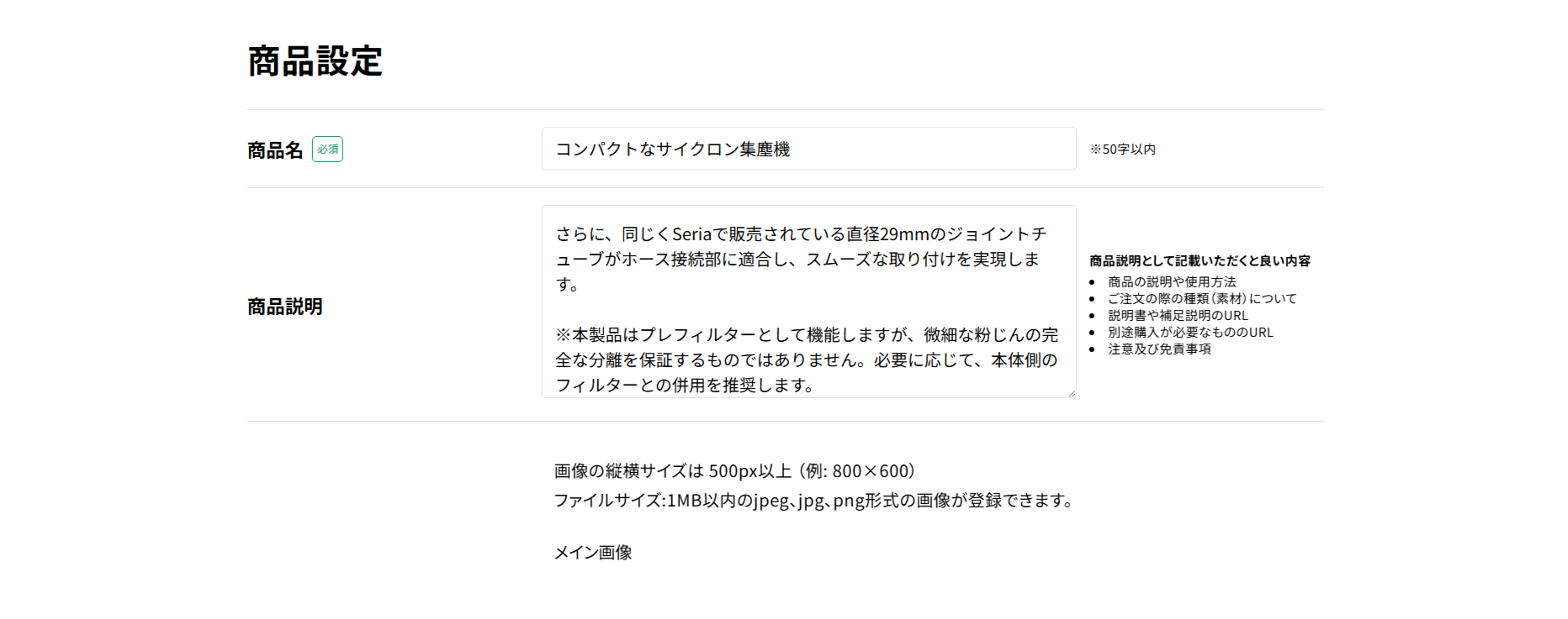 ショップ全体のコンセプトを伝える場所なので、後述する商品の説明と一貫性を持たせるのがポイントです。