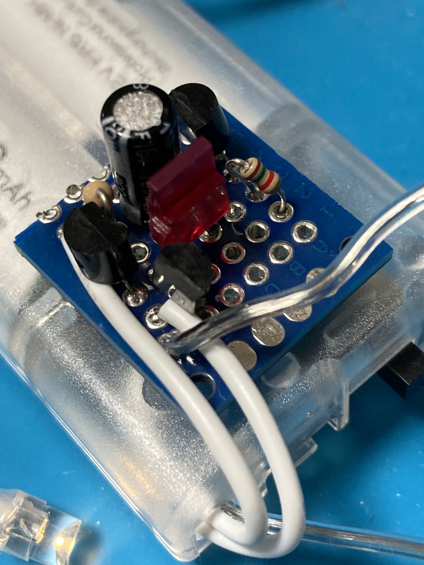 - 10連LEDランプの+側 → 単三2本の3V