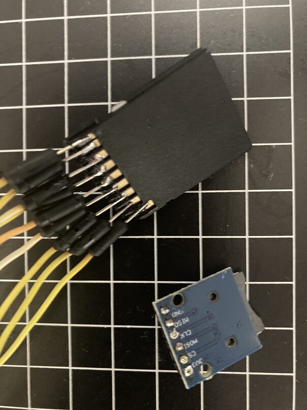 いきなり自作スロットで試すと、動かなかった時に「配線が悪いのか」「プログラムが悪いのか」切り分けができません。まずは、手元にあった市販のSDカードモジュールで、RP2350との通信テストを行いました。