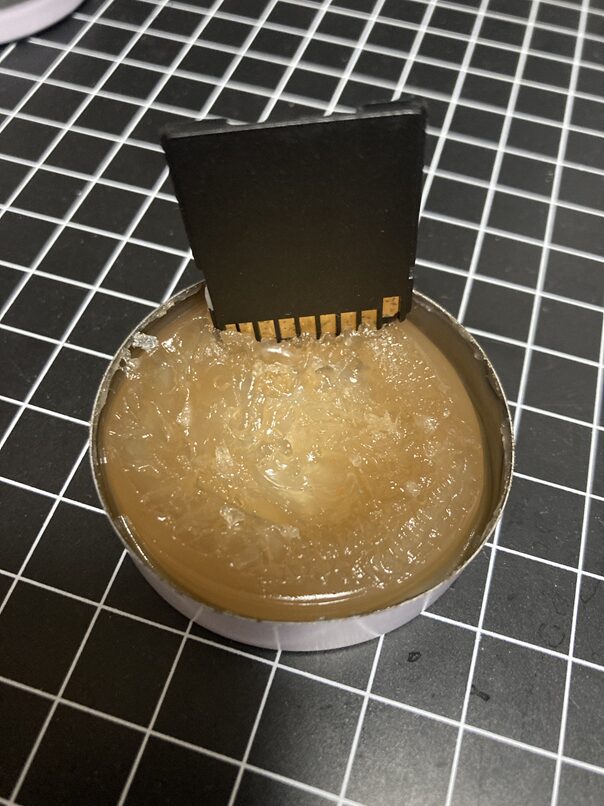 従来は「不要なSDカードを挿したままハンダ付けして、変形を防ぐ」のが定石でしたが、私は道具と化学の力でこれを解決しました。