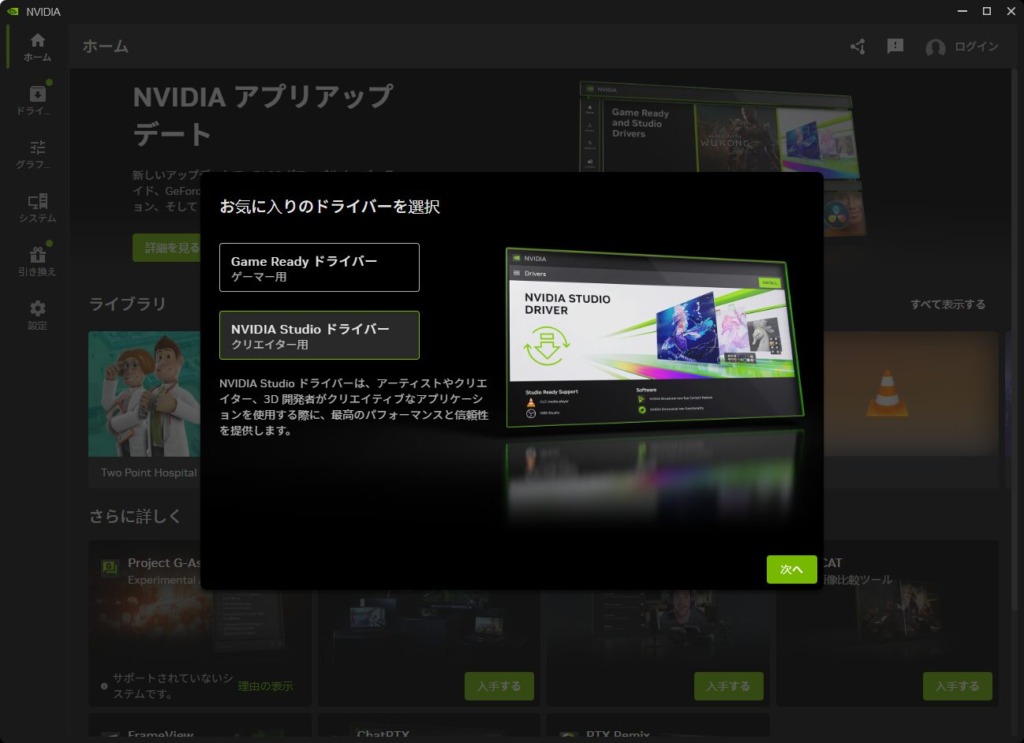 - NVIDIA Studio ドライバー(クリエイター向け)