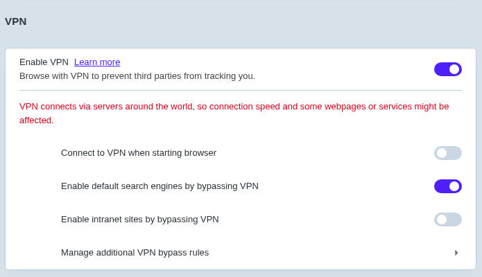 • Chrome/Firefox: 標準ではVPN機能がなく、サードパーティ製の無料VPN拡張機能を入れるのはセキュリティリスク(通信内容のぞき見など)が高すぎます。