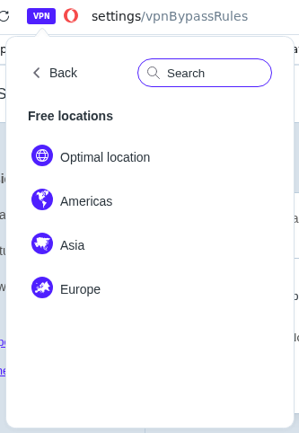 対してOperaは、「アジア」「南北アメリカ」「ヨーロッパ」といった地域をユーザーが能動的に選択できます。これが、Operaを検証ツールとして採用する最大の理由です。